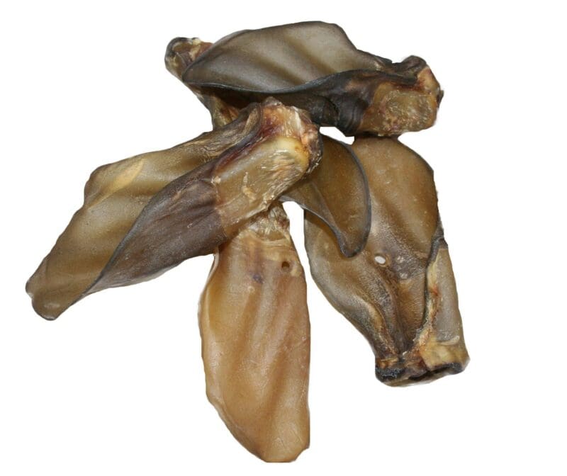 Ein leckerer Happen für den Hund. Bei diesen Ohren hat man die Ohrmuscheln extra weggelassen. Dieser Snack wird gerne von Hunde Hunde mit wenig ausgeprägter Kaumuskulatur angenommen. So kommen auch Hunde mit einem schlechteren Gebiss in den Genuss von einem Rinderohr.